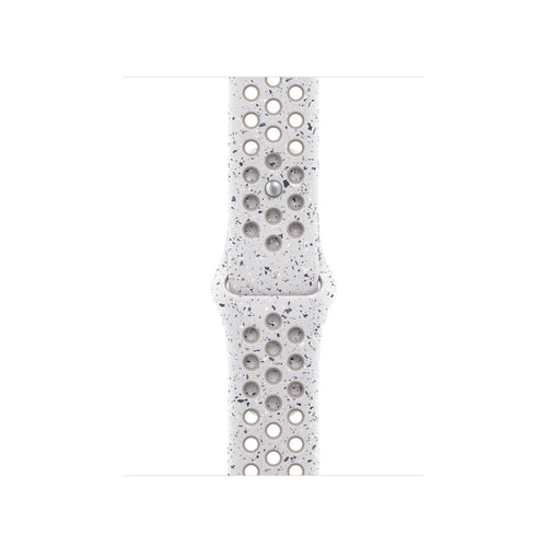 Made with compression-molded perforations for breathability, the Nike Sport Band is durable and strong, yet surprisingly soft. It features colorful flakes that create a randomized pattern, making each band unique. The smooth, dense material drapes elegantly across your wrist and feels comfortable next to your skin. An aluminum pin-and-tuck closure — carefully etched with the Run Swoosh logo — gives the pin a fresh matte finish.