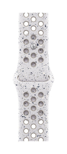 Made with compression-molded perforations for breathability, the Nike Sport Band is durable and strong, yet surprisingly soft. It features colorful flakes that create a randomized pattern, making each band unique. The smooth, dense material drapes elegantly across your wrist and feels comfortable next to your skin. An aluminum pin-and-tuck closure — carefully etched with the Run Swoosh logo — gives the pin a fresh matte finish.