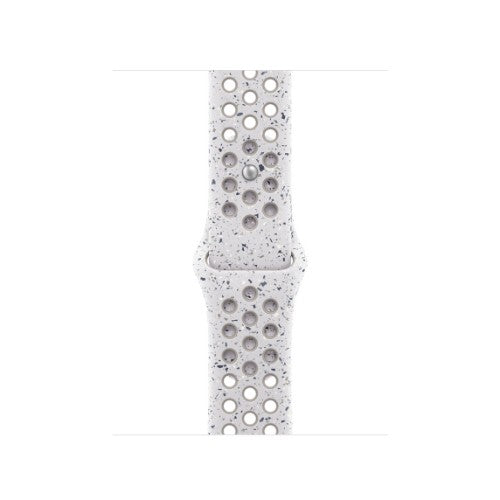 Made with compression-molded perforations for breathability, the Nike Sport Band is durable and strong, yet surprisingly soft. It features colorful flakes that create a randomized pattern, making each band unique. The smooth, dense material drapes elegantly across your wrist and feels comfortable next to your skin. An aluminum pin-and-tuck closure — carefully etched with the Run Swoosh logo — gives the pin a fresh matte finish.
