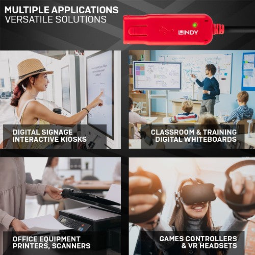 This 8m extension cable can be used standalone or as part of the Lindy USB 2.0 Active Extension System Pro. This system is a modular solution that can combine multiple USB Active Extension Pro cables and a USB 2.0 Active Extension Pro hub to distribute USB signals to up to 4 devices at up to 60m.