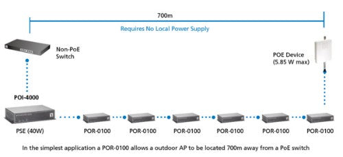 POI-4000(-Z) can work with PoE Repeaters to extend the PoE network several hundred meters. This unbeatable solution is available only from LevelOne! It brings long distances with no latency or loss of network speed.