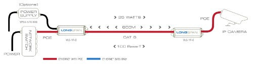 LONGSPAN Base Unit: long-range POE (powered via POE-in or VPSU-57V-X). Working together, LONGSPAN’s Base and Camera units deliver unprecedented power and bandwidth over extreme lengths of regular Cat 5e or Cat 6 network cable, enabling a dependable connection to IP cameras and other remote network devices. IP cameras can demand peak network bandwidth of several times their average data rate while transmitting critical high-activity or low-light scenes. That's why LONGSPAN has been designed to support the full 200Mbps bandwidth required for reliable 100Base-T Ethernet at up to 840 metres Cat 6 (or 690 metres Cat 5e).- As a point-to-point solution with no mid-cable equipment and smart, automatic self-configuration, installation is simple and instantaneous.