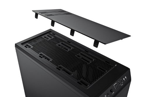The Pure Base 600 top cover is adjustable allowing choice between boosting your system’s cooling or silence. You can close it for more silence, open it partially for more exhaust or leave it open to mount a water cooling radiator.