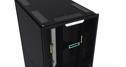 HPE G2 Enterprise Series Racks with up to 3000 pounds of dynamic loading capacity allow you to ship fully configured racks to save deployment time. Move your IT rack where you need it knowing your equipment is safe.An innovative 80% open perforation area on the door helps better cool servers.