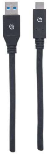 Manhattan SuperSpeed USB Type-C Cables easily connect USB Type-A peripherals and accessories to Type-C device ports. Ideal for use with any USB Type-A plug-and-play device, these cables support data transfer rates of up to 5 Gbps on Windows and Mac systems for fast, reliable transmissions and current of up to 3 amps. Nickel-plated contacts, shielding and fully moulded boots with strain relief provide dependable connections, maximum conductivity and minimal data loss with reduced EMI interference.