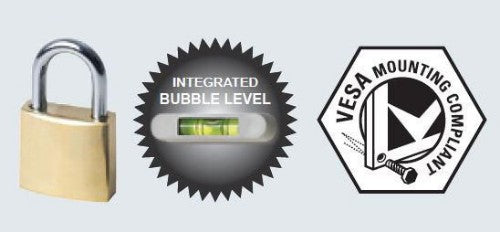 Max. load 65 kg. Typical screen size 40"-65" up to +/-15 degree tilt + anti theft lock