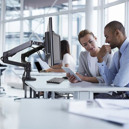 Find your best view, save desk space and discover your most productive self, thanks to the LX Dual Side-by-Side Arm. This dual monitor mount is perfect for side-by-side or low angle views. Project wrapped up? Reclaim a space full of opportunities by folding the arms and pushing them aside during a much-needed screen break.