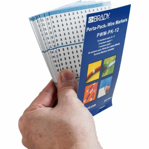Our B-500 repositionable vinyl cloth Porta-Pack® books are a convenient way to ensure the wire markers you need are always on hand. Choose from 15 different books featuring numbers, letters, special symbols and NEMA colours. Each book comes with 10 pages and includes a terminal marker with each wire marker. Over 250 different refill packs are also available (sold separately).