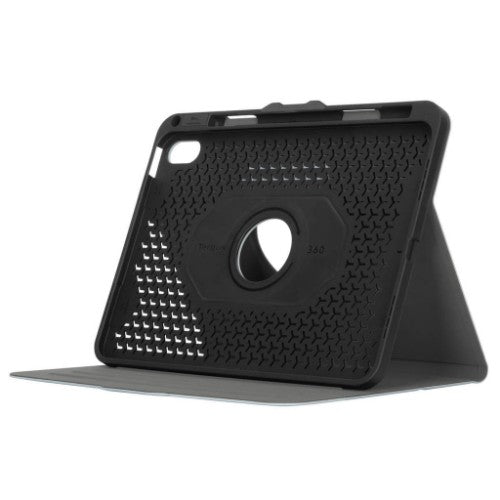 The VersaVu Case for iPad (10th gen.) 10.9-inch combines leading protection, efficient functionality, and versatile viewing, so you can carry your iPad with confidence. With a custom-moulded tray and reinforced corners, your device is protected from accidental drops and bumps, while a magnetic closure keeps it secure in the case. Like other Targus cases, the VersaVu Case offers military-grade protection for drops up to 4 feet (1.2 metres).Its patented 360° rotation creates virtually any positioning option and transitions smoothly between portrait and landscape to customise your view. Deep grooves anchor the edge to ensure stability, and precision cut-outs give you easy access to all your buttons, ports, and camera lenses. Enjoy added ease and convenience with the integrated holder for your Apple Pencil, keeping it ready to go or your stylus close at hand (Pencil sold separately by Apple). And thanks to its structural design, this case also has audio-boosting scoops, so you’ll have premium sound whether you’re taking a call, in a meeting, or streaming your favourite program.