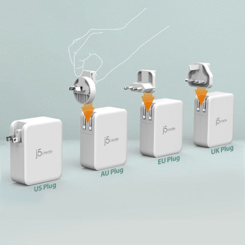 j5create JUP43130F 130W GaN USB-C® 4-Port Charger - UK, White & Grey