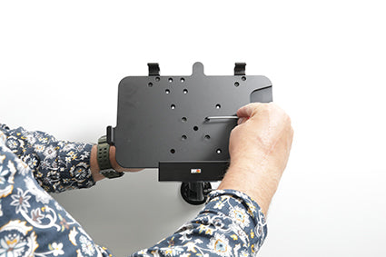 Attach the cradle onto any flat surface or Pedestal Mount in a forklift, truck, distribution vehicle, warehouse, table top etc. With 4 mm AMPS and 4 mm VESA 75 standard holes. Made of high grade ABS-, Acetal-plastic. Color: Black. Made in Sweden.