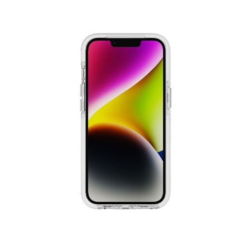 Engineered with our signature FlexShock™ technology, the Evo Crystal Kick in White for iPhone 14 boasts MagSafe® compatibility and an integrated stand for versatile portrait and landscape viewing. Lab-tested to withstand multiple high-impact drops up to 16ft, this scratch-resistant case is complete with Enhanced Camera Protection to shield your camera lens from damage.FLEXSHOCK