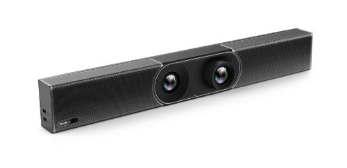 Yealink MeetingBar A30 is an all-ine-one video bar deisgned for medium space (up to 15, with additional extended wireless mic. VCM36). The dual-camera system catches details in a medium room precisely, with great color. AI-powered features including Auto Framing, Speaker Tracking, Picture-in-Picture and Smart Gallary deliver a focused view without distraction. The built-in 8-MEMS beamforming microphones pick up voice from all directions, and a full-duplex audio algorithm with AI-enhanced noise cancellation delivers clear sound for both sides clearly even if you are talking at the same time.