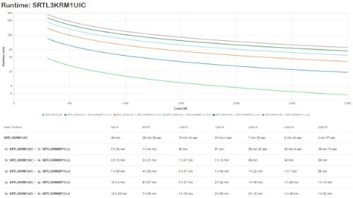 You can easily read the expected battery life in the runtime graph, which you can find between the product images. You can easily see how long the UPS supplies emergency power at a certain load.
