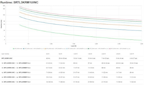 You can easily read the expected battery life in the runtime graph, which you can find between the product images. You can easily see how long the UPS supplies emergency power at a certain load.