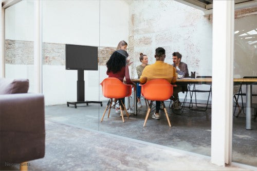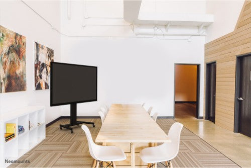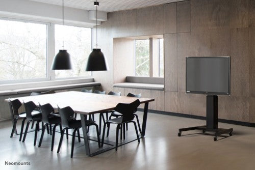 With the Neomounts PLASMA-M2500BLACK automatic height adjustable floor stand you place a large format flat screen on the floor. Get optimal positioning for both standing and seated audiences, in any application, in any part of your location. Perfect to use in a class room, boardroom, presentation room or public entrance.The PLASMA-M2500BLACK is suited for screens between 42-100" and has a load capacity of 150 kg. The trolley is suitable for screens with a VESA hole pattern of 300x200 to 600x800 mm. Behind the screen is a 6 cm deep space available to mount a media player or mini-computer. Cables can be guided at the back of the mount.