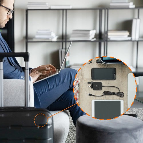 The charger is built with an advanced power integration GaN power chip, this high-speed, high-efficiency, compact charger charges faster than other standard power supplies.