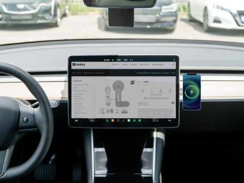 Sandberg ScreenMount Magnet Charger 15W allows you to charge the battery in your smartphone completely wirelessly. The wireless charger can easily be fixed to the back of your computer screen or in your car. Now you can place your smart phone on the elegant charger with a magnet. Then the battery will be charged while you have a clear view of the screen on your smart phone.