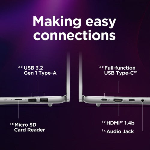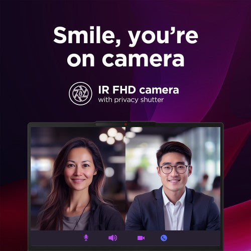 Work anywhere with easy videoconferencing and other features. The optional IR FHD camera uses a Time-of-Flight (ToF) sensor to deliver touchless logins, instant wakes, and careful pauses. Or you can opt for the fingerprint reader model, allowing you to get everything started with just one touch. The privacy shutter offers complete peace of mind from unwanted eyes. Expand your workflows, use multiple accessories, or transfer large files in a snap with two full-function USB-C ports. And stay powered on with a large, all-day battery that features rapid-charging technology.Slim frame, sturdy design