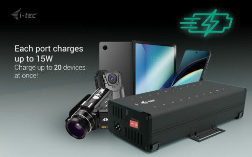 This modern HUB offers 20 USB-C with Plug & Play functionality and up to 15W charging per port. With 20 USB ports, the HUB can charge up to 20 devices at once.At the same time, the ports allow data transfer: two USB ports (1 and 11) allow 5 Gbps transfer and the remaining ports support speeds up to 480 Mbps (USB 2.0).