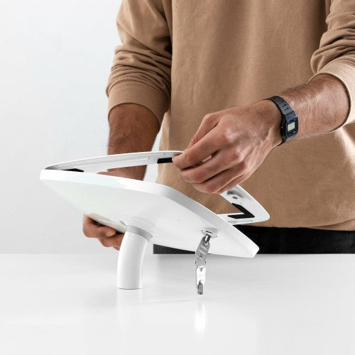 The Bouncepad Desk is a secure, low-profile tablet kiosk ergonomically designed for easy interaction when mounted to a counter, table or desk. This desk mounted enclosure is compatible with iPad, Samsung and Microsoft tablets. See detailed tech specs below.