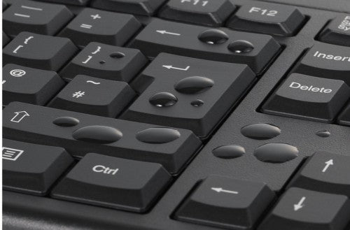 A sealed membrane keyboard design ensures that any spills of water, coffee, or other liquids will not damage the electronics and can be simply wiped dry.