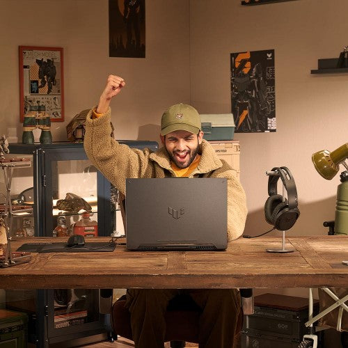 BRAND NEW DESIGNThe chassis has been redesigned for 2023, now 4.5% smaller than the previous design. The two color options each have a different logo location, with the Jaeger Gray edition featuring a large laser-sculpted design, and the Mecha Gray edition showing off an embossed logo on the lid. The four-way indicators can be seen even while the clamshell is closed, and the touchpad features a mech-inspired TUF logo in the corner.