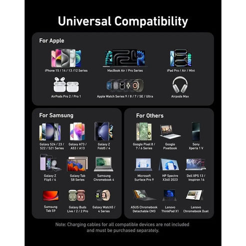 Enjoy unparalleled compatibility with the charger, designed to seamlessly work with over 1,000 devices including smartphones, tablets, laptops, earbuds, and more.