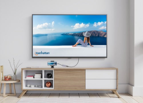 USB-C to HDMI Adapter 4K60 to connect a laptop, MacBook®, smartphone or tablet to an HDMI display - plus a USB-A peripheral and Power Delivery charging portThe Manhattan USB-C 3-in-1 HDMI Docking Converter with Power Delivery establishes a fast, simple and convenient link between a newer USB Type-C equipped media source (a laptop, PC, MacBook®, Chromebook™, computer, tablet, etc.) and existing HDMI display (monitor, TV or projector) for 4K at 60 Hz images in either mirror- or extended-display mode. Create a mini-workstation by adding any USB 3.2 Gen 1 (formerly USB 3.0) peripheral such as a mouse, keyboard, hub, external memory device and more with the integrated USB-A port. This multiport Docking Converter is easy and quick to install. No complicated configuration or setup is required to enhance the functionality of your USB-C device. Its all-in-one design achieves a compact, integrated solution that eliminates unnecessary cables, tangles and clutter to keep installations and workspaces neat and orderly.