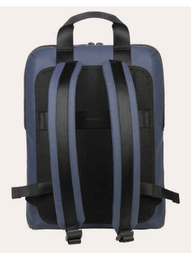 Backpack featuring a minimal-sporty design for 15.6" laptops and 16" MacBooks, in rubberized material. Equipped with a large single compartment, the Gommo backpack has an internal pocket for laptops and an external pocket for accessories. It also features a breathable mesh back as well as a convenient trolley strap.