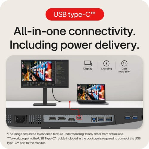The USB Type-C™ port supports functions like display, data transferring, and connected device charging (up to 65W) all at the same time, over a single cable.