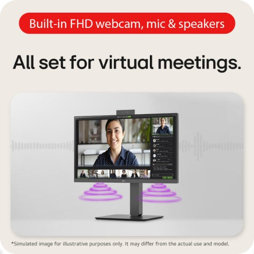 The 24BA850 comes with a built-in Full HD webcam, mic, and speakers, allowing you to participate in web conferences or watching videos.