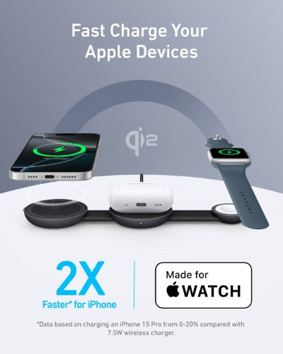 - 15W Fast Charging for iPhone and Apple Watch: Quickly power up your iPhone 15 Pro to 20% in 15 minutes and an Apple Watch Series 9 to 30% in 22 minutes with a certified and MagSafe-compatible wireless charger. (Note: This product is not a power bank.)