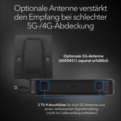 NETGEAR M3. Wi-Fi band: Dual-band (2.4 GHz / 5 GHz), Top Wi-Fi standard: Wi-Fi 6 (802.11ax), WLAN data transfer rate (max): 2900 Mbit/s. Networking standards: IEEE 802.11a, IEEE 802.11ac, IEEE 802.11ax, IEEE 802.11b, IEEE 802.11g, IEEE 802.11n. 5G standard: Sub6, Sub6 SA. Product type: Portable router, Product colour: Black. Cables included: USB Type-C