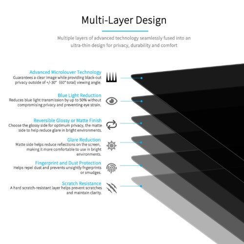 Protects sensitive data from visual hackers with a +/- 30 degree viewing angle restriction.