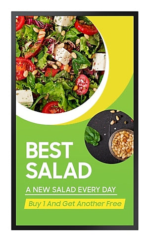 Samsung Window Signage adds a stunning display to your storefront. Featuring high brightness and clarity, even in direct sunlight, the display makes your messages stand out. The slim design maximizes space utilization while creating captivating and engaging customer experiences.