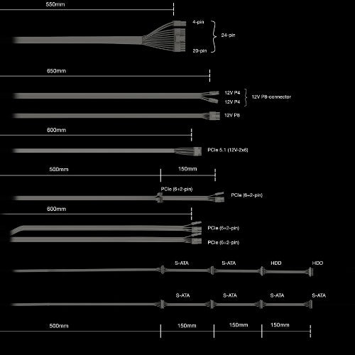 - ATX 3.1 PSU with full support for PCIe 5.1 GPUs and GPUs with 6+2 pin connectors