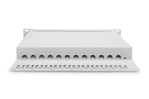 CAT 6A Patch Panel, shielded, 12-Port label field, 1U, 10" rack mount, grey RAL 7035