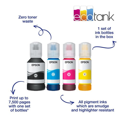 Save every time you print with this EcoTank that delivers an incredibly low cost per page. Unlike other printers, EcoTank features large ink tanks that you fill with low-cost ink bottles.