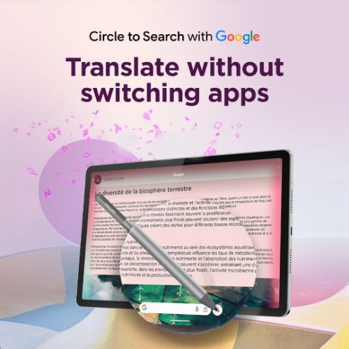Say goodbye to screenshots and switching apps. Now, when you see words in another language on your tablet, you can use Circle to Search to get help instantly. Whether it’s an image, video, or text, just long press the home button or navigation bar and tap the translate button to see instant translations, then get right back to what you’re doing.LENOVO AI NOTE