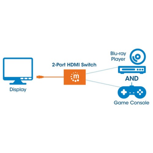 Easily connect multiple HDMI sources to a single display.The Manhattan 1080p 2-Port HDMI Switch allows media enthusiasts to connect two HDMI video sources - including gaming consoles, Blu-ray players, satellite receivers, digital recorders, set-top boxes and other devices - to a single high-definition display.